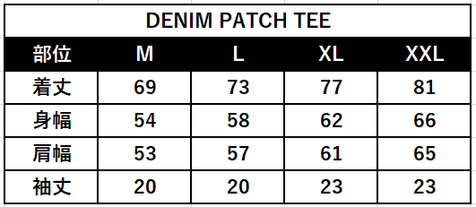 ・ブルー生地にウォッシュ加工をかけ、デニムパッチの風合いやボディのグラデーションを楽しめる1枚。