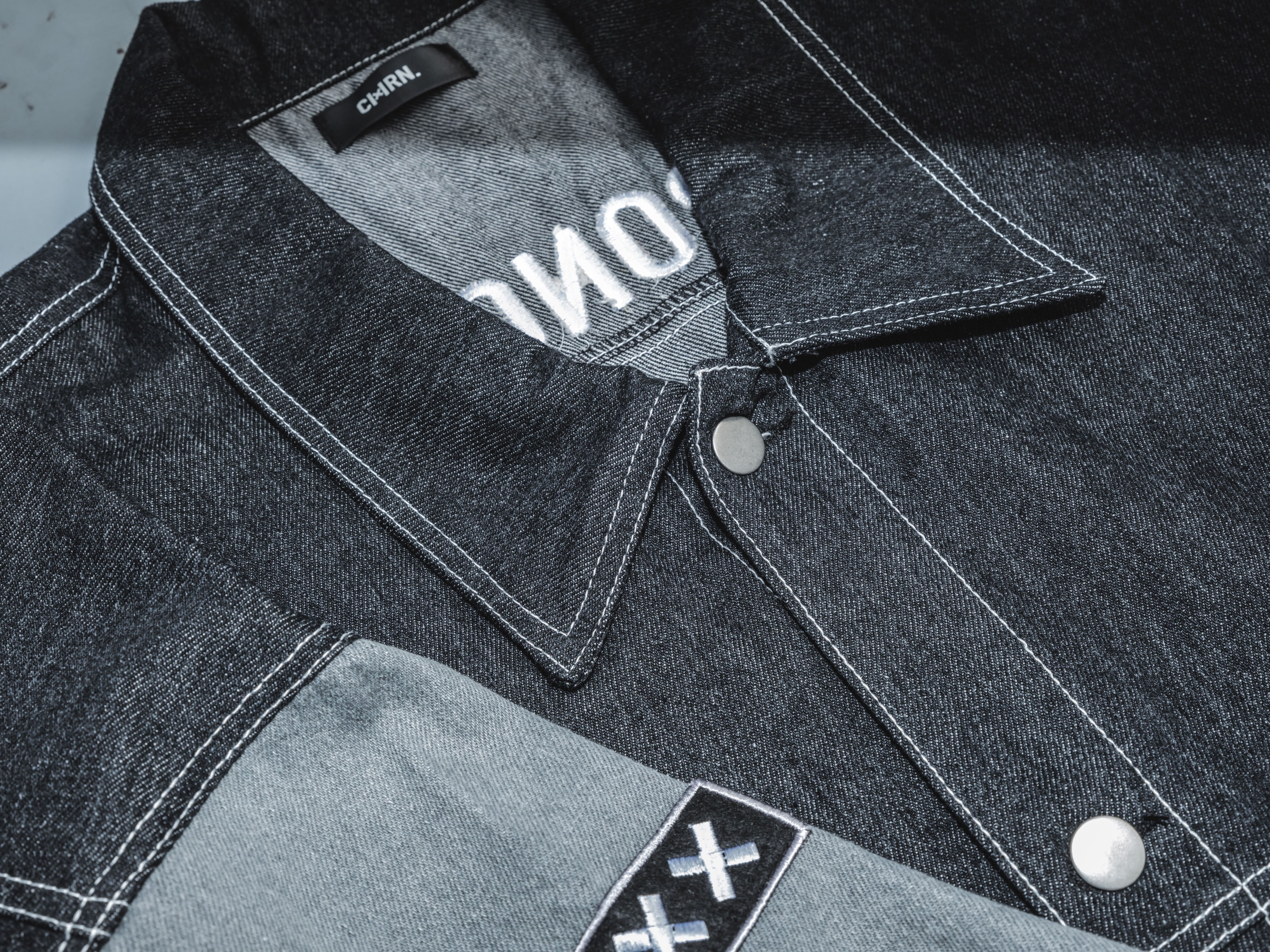 ・胸と背面にシンボルロゴを刺繍。右腕部にパッチワーク。