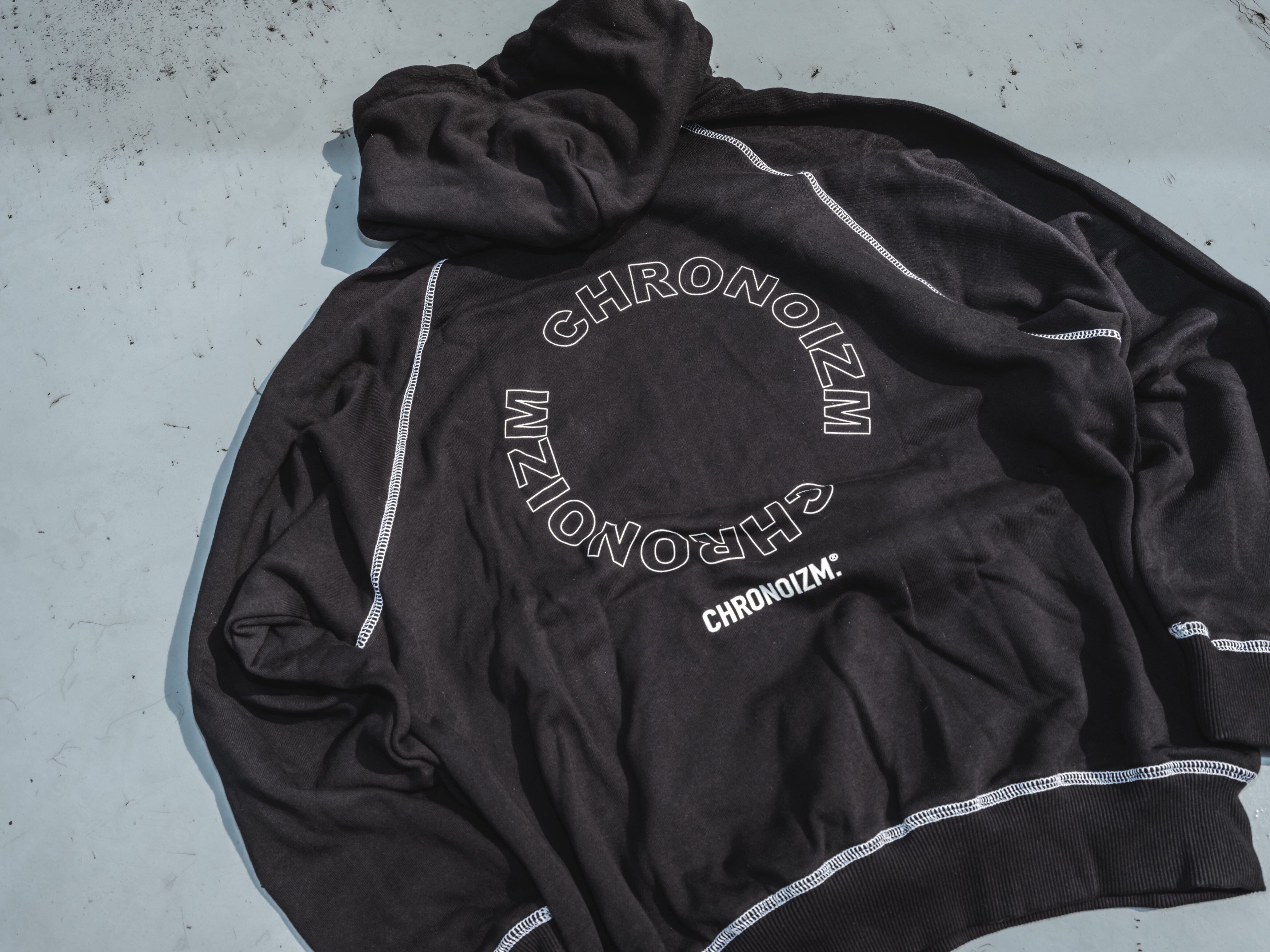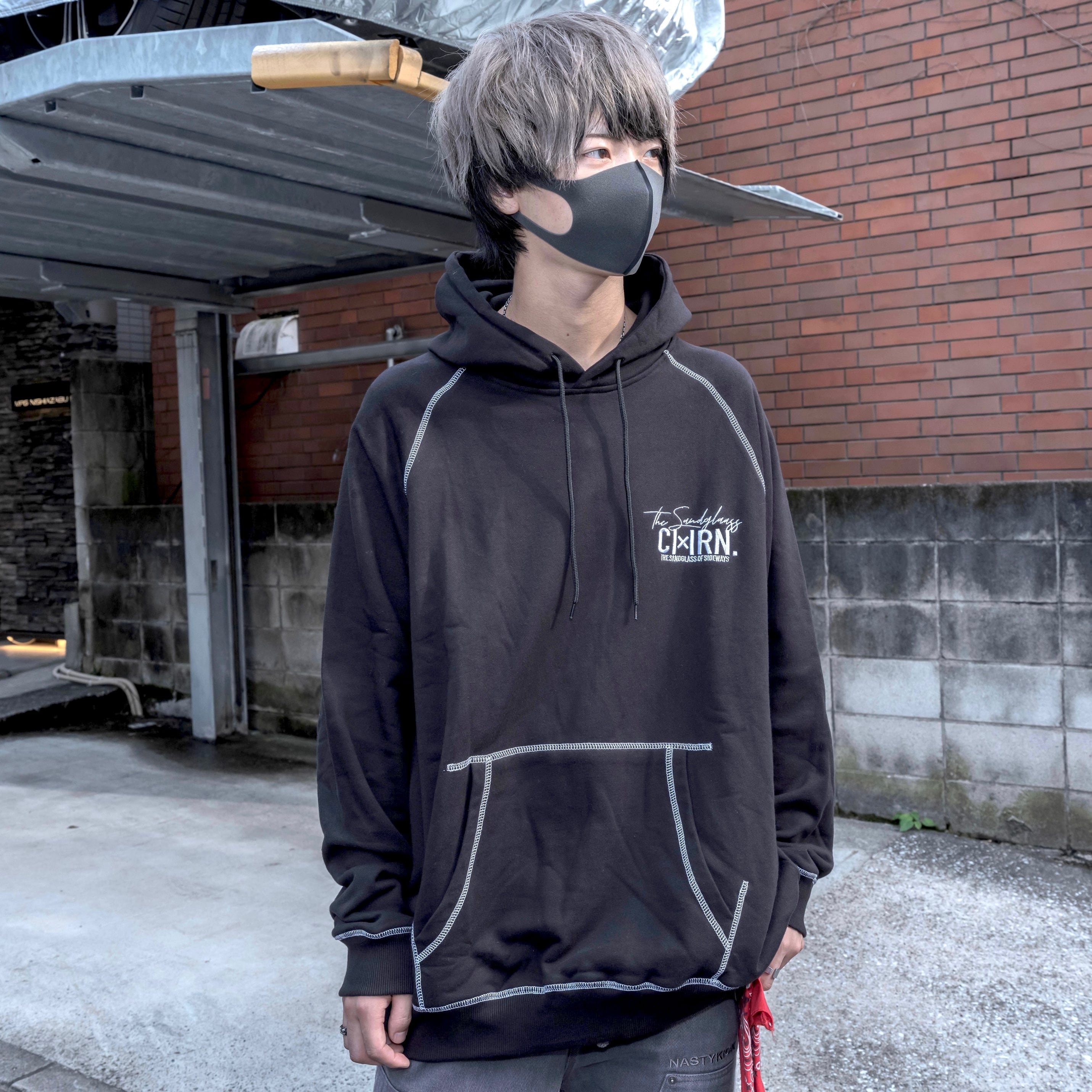 ・ホワイトステッチを全身に走らせたパイル地パーカー。