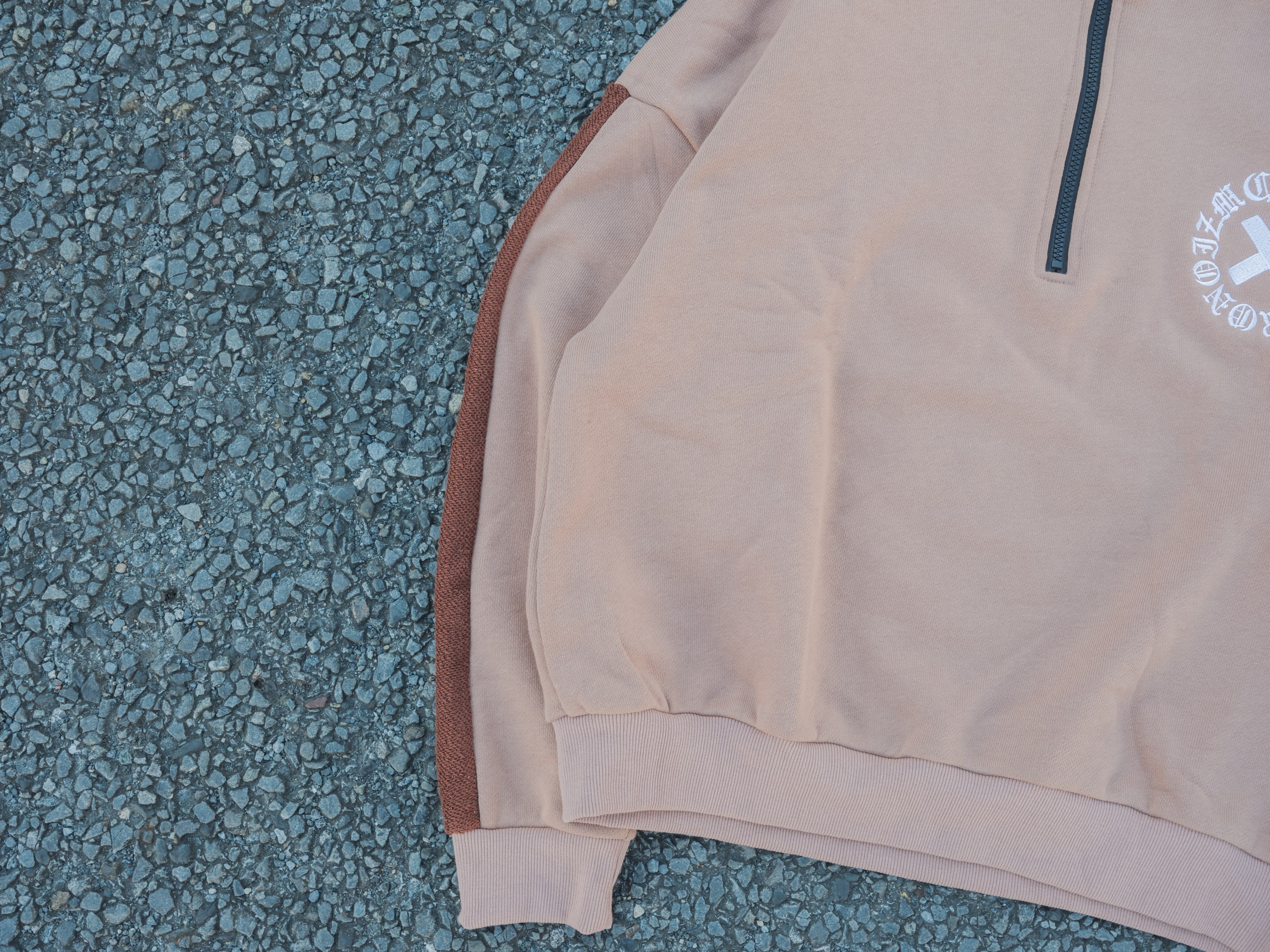 肩から袖にかけてラインを走らせたハーフジップスウェット。