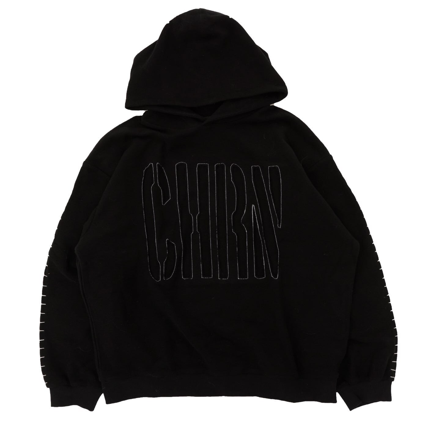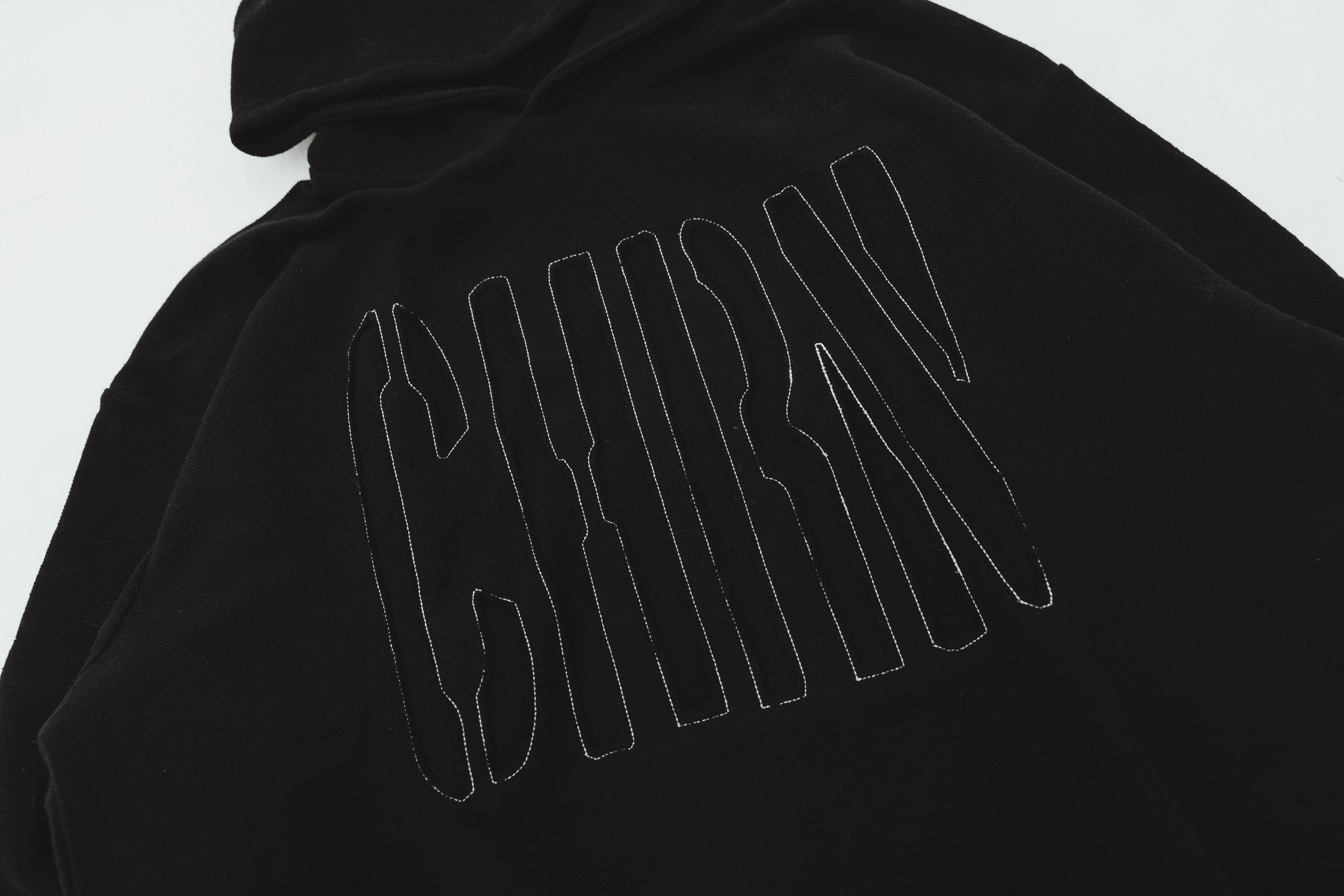 ・フロントはロゴを切り抜き、当て布を白糸で縫い付け。