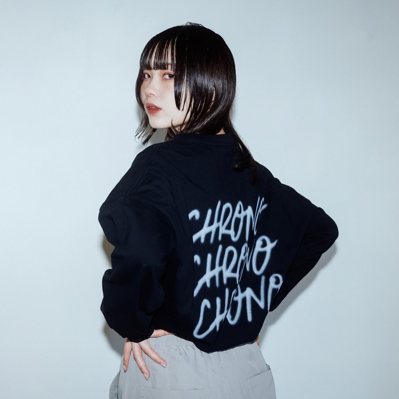 ・バックに滲むようなロゴデザインをプリントしたシンプルな長袖Tシャツ。