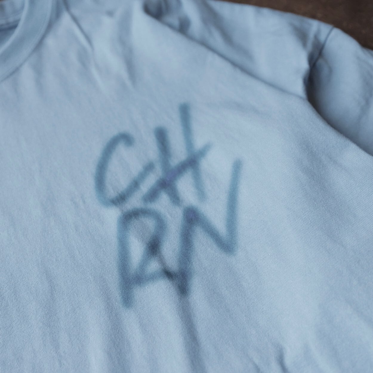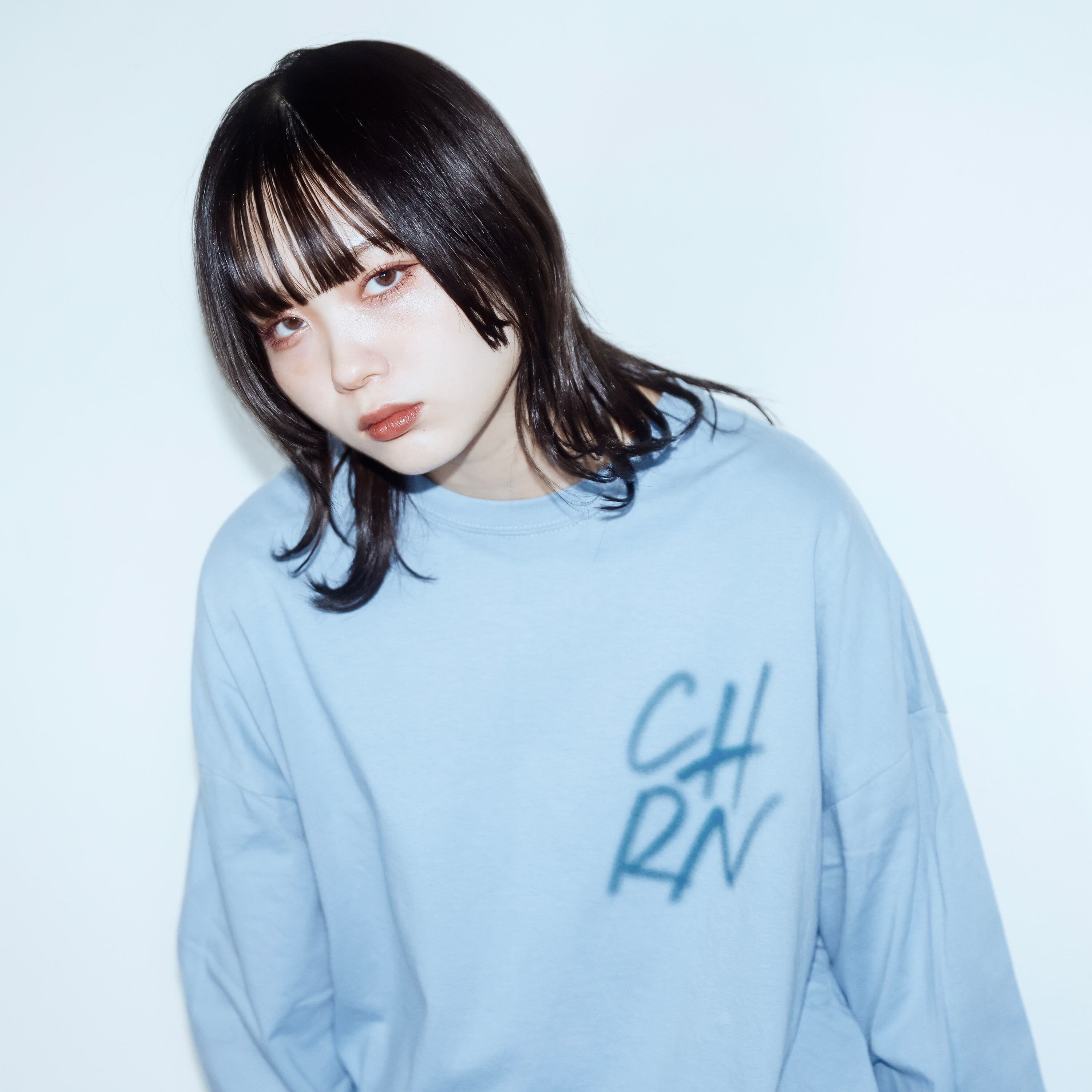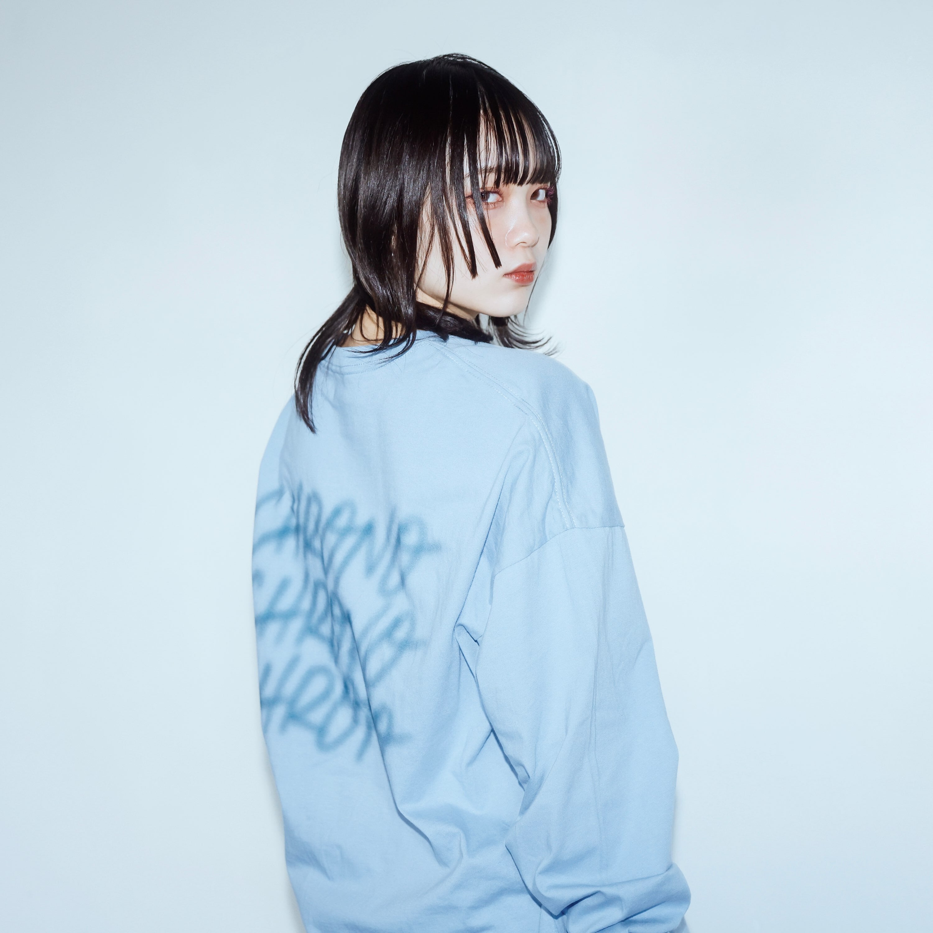 ・バックに滲むようなロゴデザインをプリントしたシンプルな長袖Tシャツ。